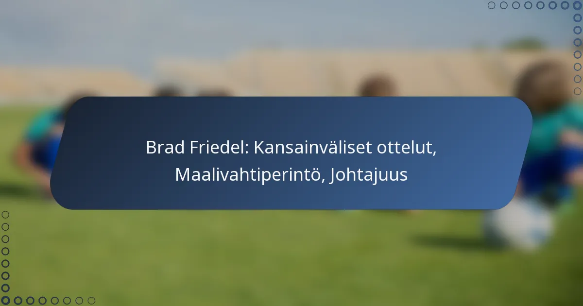 Brad Friedel on legendaarinen hahmo amerikkalaisessa jalkapallossa, joka tunnetaan vaikuttavista panoksistaan Yhdysvaltojen miesten maajoukkueessa yli 80 maaottelun verran. Hänen innovatiiviset maalivahtitekniikkansa ja vahvat johtajuusominaisuutensa ovat jättäneet pysyvän vaikutuksen lajiin, vaikuttaen tuleviin maalivahtisukupolviin. Koko uransa ajan Friedelin kyky inspiroida ja yhdistää joukkuetovereitaan on vahvistanut hänen perintöään sekä Yhdysvalloissa että kansainvälisesti.
